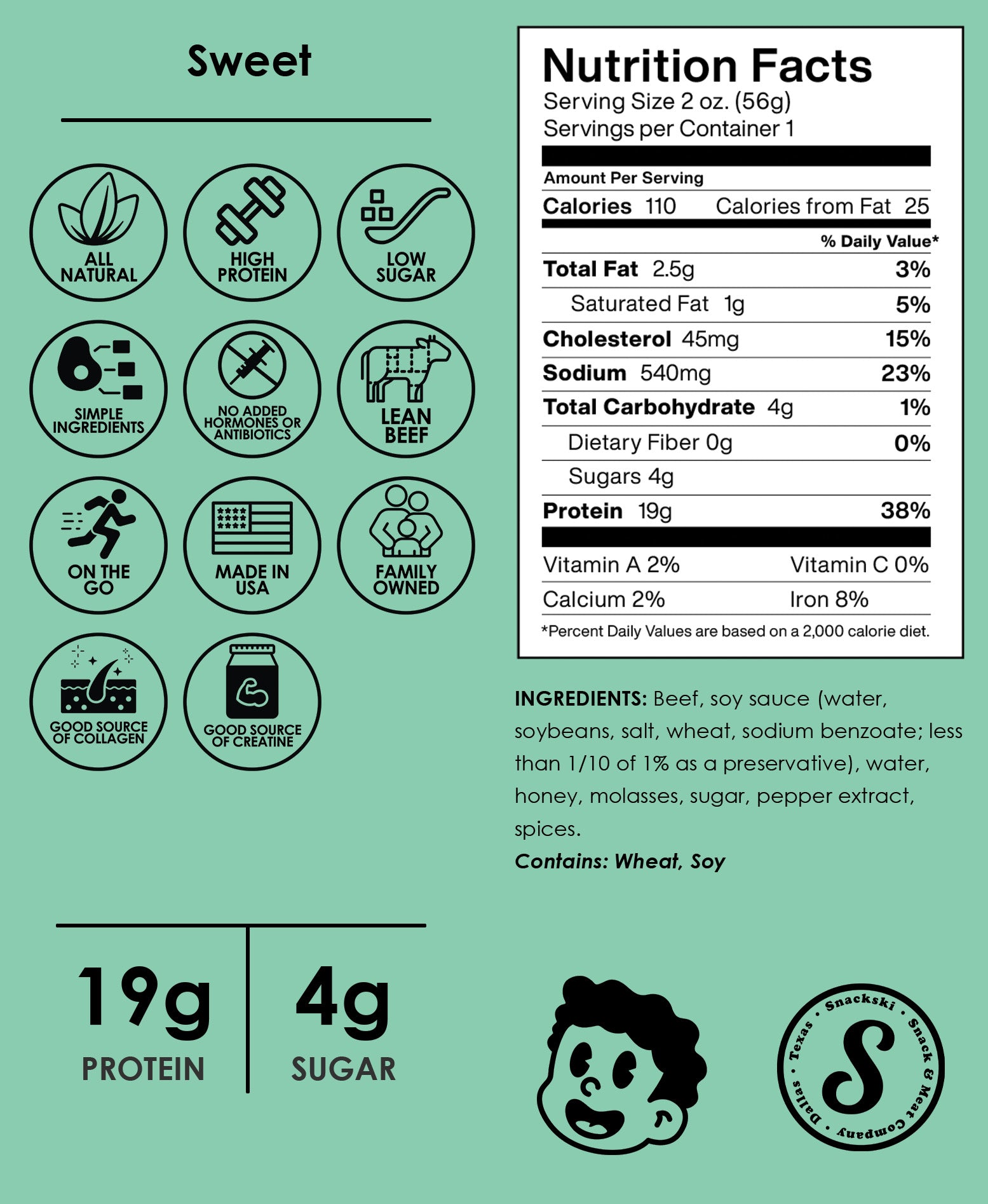 Our jerky isn’t just tasty—it’s also packed with health benefits. Each strip is loaded with extra protein to help build and repair muscles, creatine for improved athletic performance, and collagen to support joint and skin health. Whether you’re an athlete looking for a post-workout snack or someone in need of a quick energy boost, Snackski Sweet Beef Jerky is a nourishing option that fuels your body with the nutrients it craves.